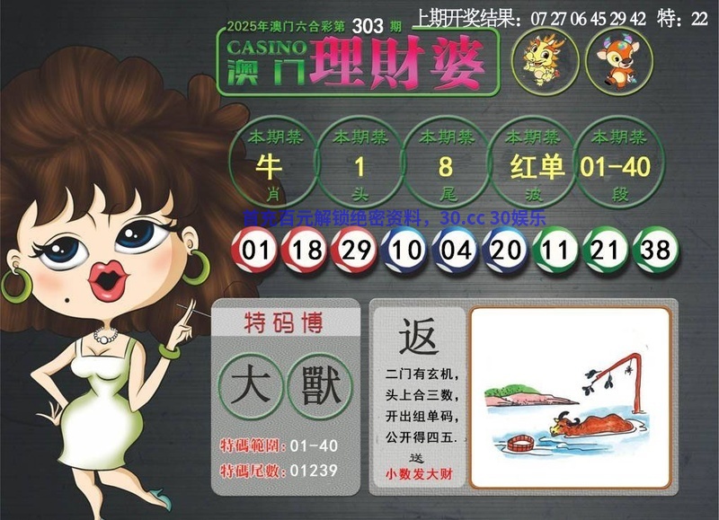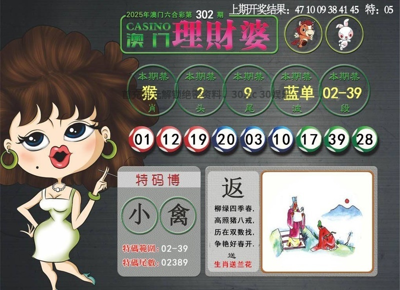 | 303期 | 牛狗鸡猪 | 龙蛇猴兔 | 开:兔15准 |